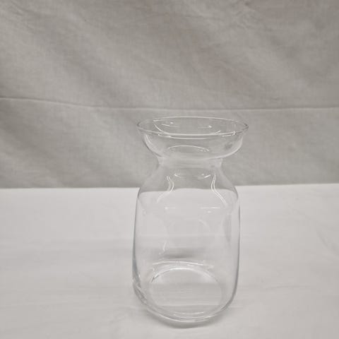 Sylinderformet glassvase. I god stand. Hel og pen uten skader. Høyde: 18 cm. Diameter øverst: 10 cm.