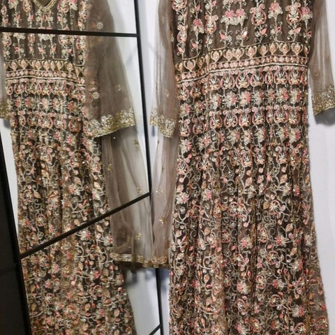 Brukt kun 1gang. Kan fint brukes til Dholki fest eller Mehndi fest. Buksen er gharara bukse