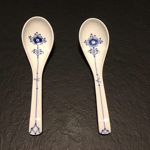 Tekanne med bambushank fra Royal Copenhagen i blå riflet