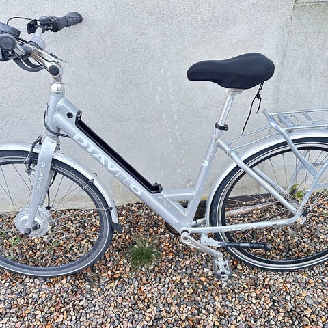 Sykkelen har stått veldig lenge og mangler lader. Hjulene trenger mer luft.