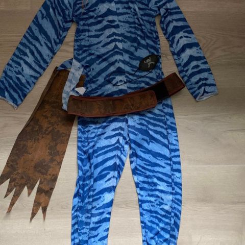 Piratkostyme bestående av piratskjorte, hodetørkle og krage. En flekk på kragen som sikkert går bort i vask. Selges kr 45.