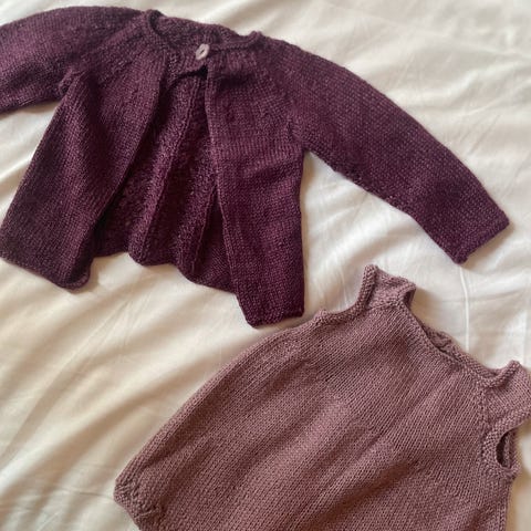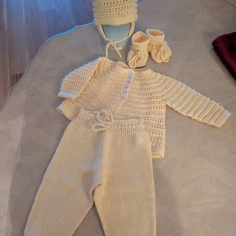 Brukt kun 2 ganger, hjemmestrikket av min bestemor. Ser ubrukt ut, fint som hentesett eller for å pynte seg til f.eks. jul.