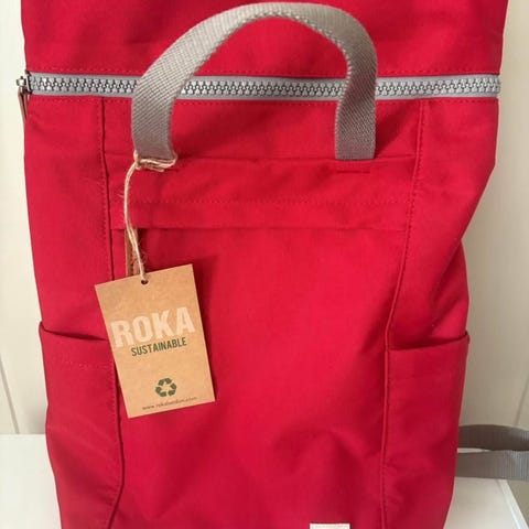 Roka London Bag Company ryggsekk laget av stoff i oransje farge. Ryggsekken har justerbare grå stropper og to lommer med glidelås for oppbevaring, samt en oppdeling i selve rommet. Designet for unisex bruk. Opprinnelig pris ligger på 1400kr. Sekken fremstår som ny, men den har noen sparsomme merker(siste bilde). Den er brukt ved 1-2 anledninger.