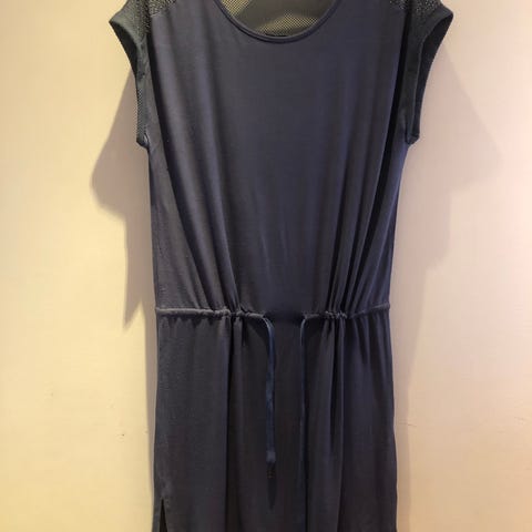 Selger pent brukt mørkeblå kjole for dame i størrelse M/L. Kjolen har lange armer glatt stoff forran og bomull bak og på armene, med elastisk midje. Kan sendes mot at kjøper betaler porto eller med fiks ferdig.