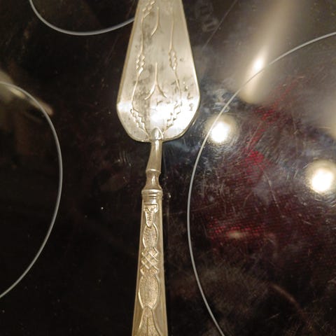 Victoria kakespade i 40 g sølv, flott mønster, lengde 22,5 cm,hel og fin, kan sendes, pris 200 kr