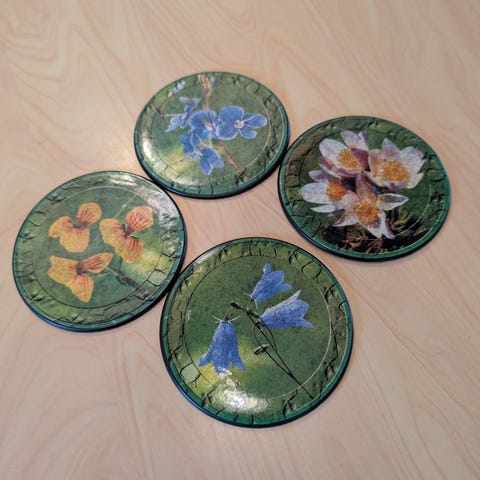 Egenproduserte glassbrikker med dyremotiv.