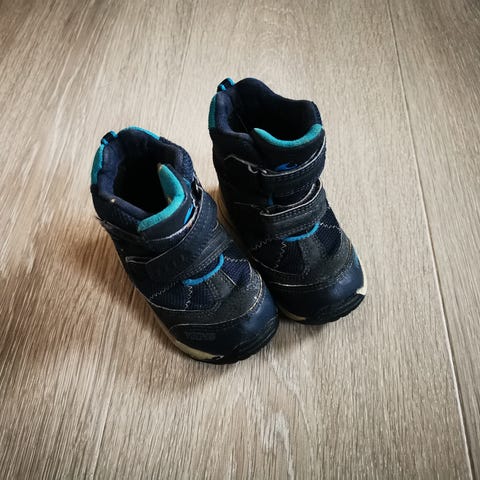 Viking barnesko for unisex, størrelse 22, i svart farge. Skoene har borrelåslukking og gummisåle, egnet for barn.