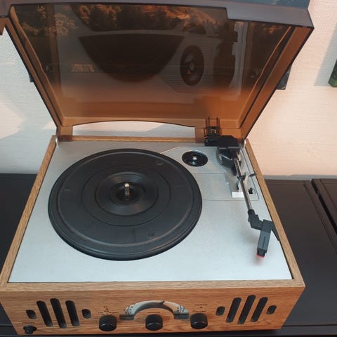 Gammel retro kommode med platespiller. Usikker på tilstanden. Selges med gamle LP plater.