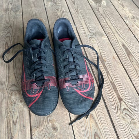 Nike Mercurial fotballsko i størrelse 36,5 sort farge, med knotter for bruk på gressbaner. Laget av syntetisk materiale med snøring for justerbar passform. Designet for barn.