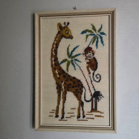 Broderiet er stiftet på en treplate (42 x 50 cm) og kan enten settes i ramme for oppheng, eller brukes kreativt til omsøm.