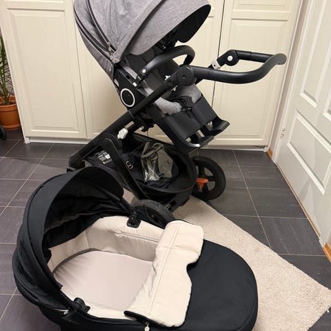 Barnevogn med liggedel, sportsdel og ekstra utstyr selges.