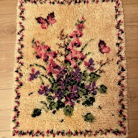 Nydelig håndknytta knytteteppe / rye i 100 % ull. Veldig god stand. Lite brukt.