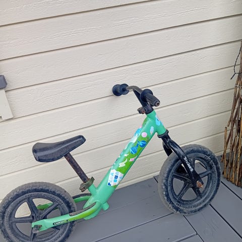 Godt brukt balansesykkel med brede hjul og god stabilitet.