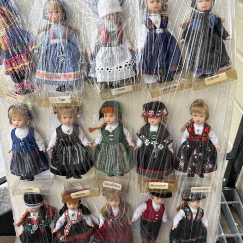 Vintage samlerdukker i folkedrakter. For mål se bilder. Selges samlet 450kr
