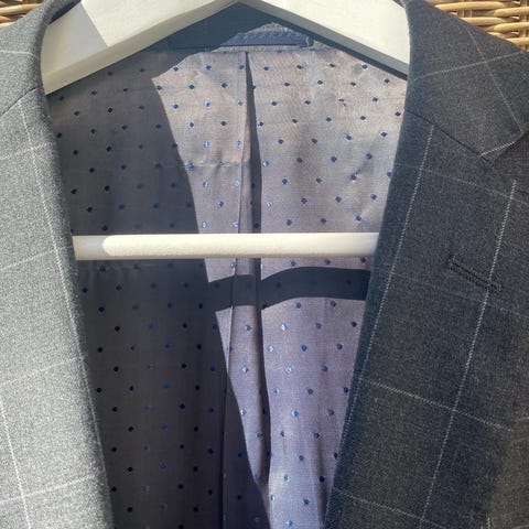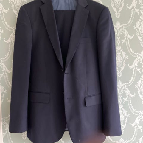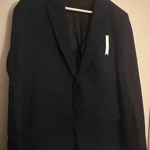 Dressmann Slim Fit dressjakke i blå farge, størrelse 48 for menn. Jakken har en slank passform og er egnet for formelle og semi-formelle anledninger. Tilførende Bukse Slimfit størrelse 30-32.