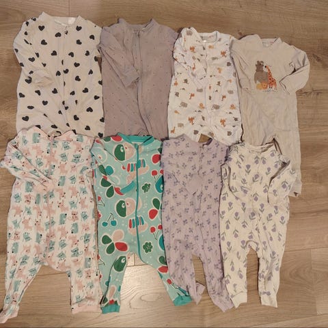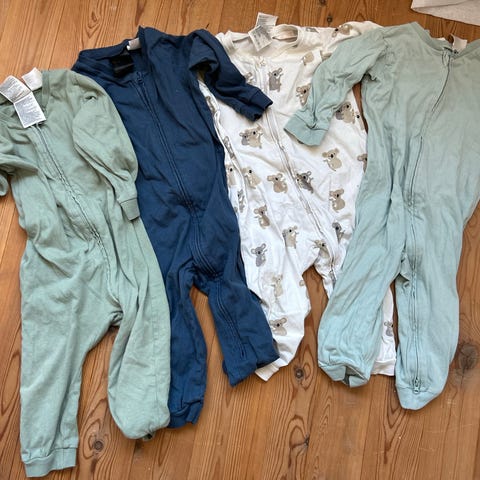 Pysjer i strl 1-3 år. Det står 2-4 år i den ene, men er nok mer 2-3 år. Kan finnes bruksmerker på de, men det er MASSE bruk igjen. Gode og myke og holder barnet varm gjennom natten. ☺️🤍