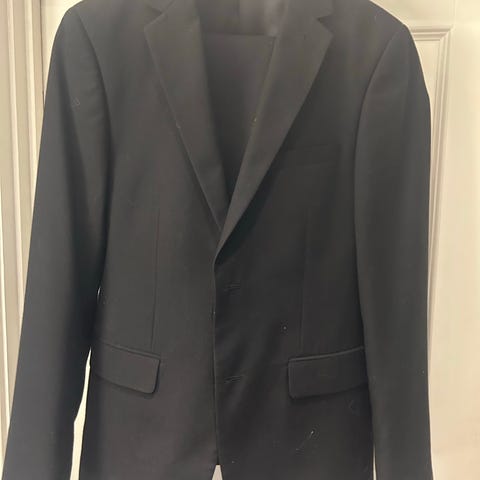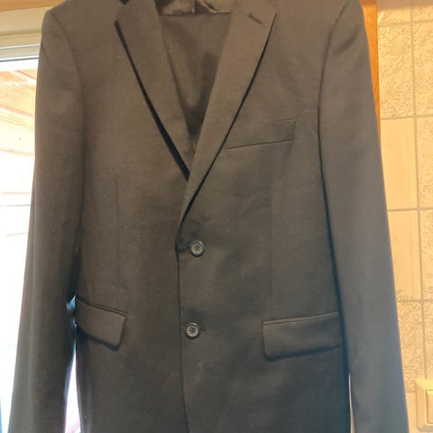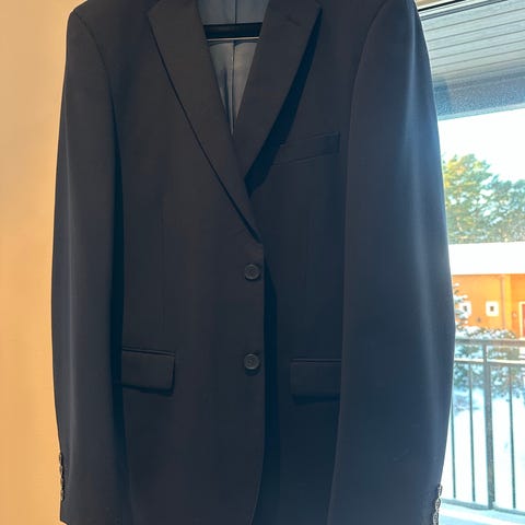 Dressjakke i str 50R slim fit og dressbukse i str 32 - 30. Passer meg i lengden (185cm), men selges da midjen ble litt trang.