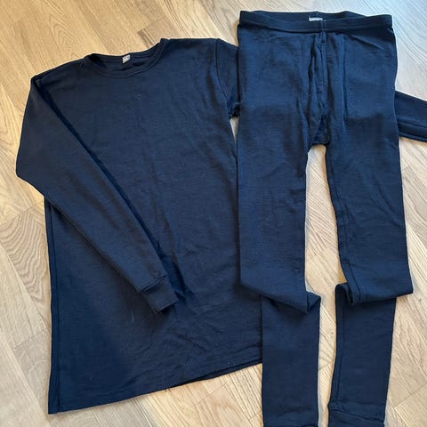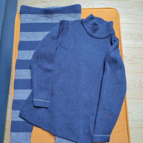 100% merinoull i ribbestrikk som gjør plaggene tøyelig og varer lenge. Ikke brukt, lappen er tatt av buksen. Selges da vi kjøpte feil størrelse, denne ble for stor for vår på 95 cm.