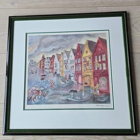 Tekstiltrykk "bryllup" av den svenske kunstneren Ilse Claesson Roempke. Sjarmerende trykk i god stand. Må hentes.
