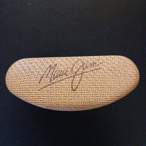 Vintage Ray-Ban W1714 Sport Wayfarer II solbriller fra Lillehammer-OL i 1994 er en av de mest fargerike, og definitivt de mest samleverdige, i den ikoniske serien av B&L Ray-Ban Olympic Commemorative solbriller. Du får W1714 i den klassiske Wayfarer II-innfatningsstilen. Vi elsker fargene og de stiliserte representasjonene av mange av vintersportene du finner på stengene, og kombinasjonen av de dominerende fargene blått, rødt og beige skaper et virkelig iøynefallende par solbriller. Unisex-innfatningen på Vintage Ray-Ban W1714 Sport Wayfarer II måler omtrent 5,75 tommer (ca. 14,6 cm) fra tinning til tinning, og linsene måler omtrent 2,0" x 1,75" (ca. 5,1 cm x 4,4 cm) på de bredeste punktene. Høyre linse er laseretset med Ray-Ban sammen med de olympiske ringene, og begge linsene er laseretset med BL nær hengslene. Du finner logoen for Lillehammer '94 OL preget på utsiden av den ene brillestangen, og innsiden av den ene stangen er merket Sport Wayfarer II 1994 Lillehammer, mens innsiden av den andre stangen er merket B&L Ray-Ban USA.