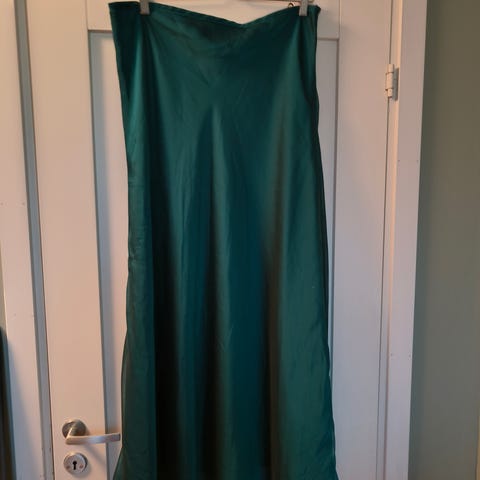 Skjørtet er foret et stykke ned og er laget av 100% bomull. Livet er i myk stretch og kan brettes dobbel som linning eller brukes som stroppeløs topp som kjole. Brukt 2- 3 ganger.
