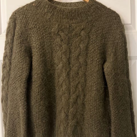 Selger denne grønne poppy genseren,strikket i str S,men vil si den er litt liten i størrelsen. Strikket i garnet påfugl,i fargen jadegrønn.