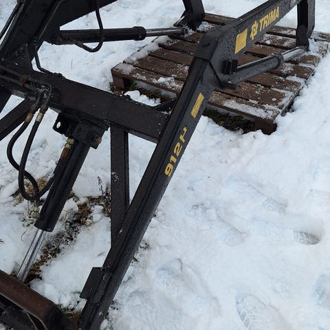 Tror den veier ca. 580 kg, passer nok greit på traktor i størrelse 80-100 hk.