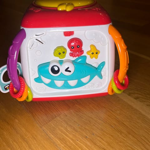 en stor kube for aktiviteter, barn leker med den lenge og med stor glede
