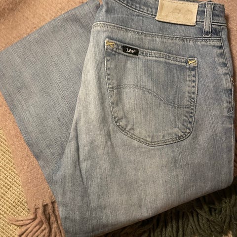 Veldig behagelig og den er lite brukt. Men det er noen små hvite merker og en søm på sidelommen som viser at den er brukt.