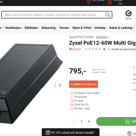 Frakt fra 25 kr + Trygg betaling 64 kr. Frakten er på tilbud – ordinær pris er 39 kr.