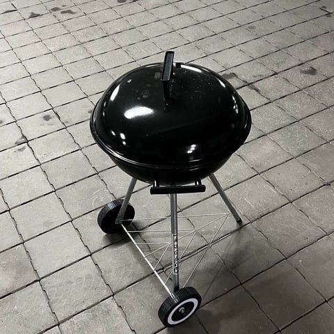 Grillen er litt vinglete og trenger en vask, men er fullt funksjonell