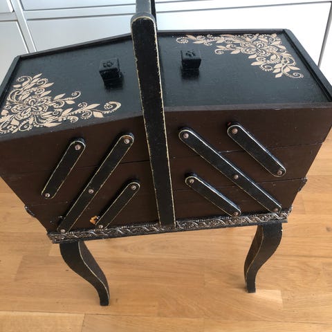 Selger mitt fine veggteppe fra India.Fin rosa farge i bunn og mange fine detaljer.Høyde er ca 1,53 m,bredde ca 40 cm med den sorte listen rundt teppet.Løse tråder kan forekomme og noen merker på baksiden av teppet.Et fint teppe som selges rimelig Kanten rundt teppet er litt slitt og misfarget og noen tråder er løsnet langs kanten av teppet.Kan sendes mot frakt.Ps.ingen retur.