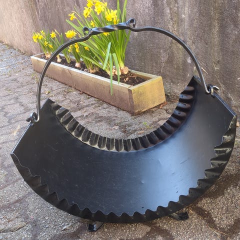 Retro vedkurv, smijern (??). Godt og synlig brukt. Fra 50-60-tallet, eller eldre. Hentes på Sør-Fron.