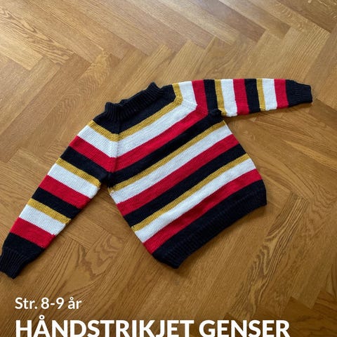 Håndstrikket genser i mykt ull garn. Bolen=53 cm, arm 43cm