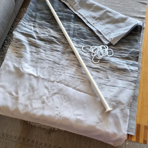 Dusjforheng med 8 plastringer, ubrukt. Har klipt av lappen. Selges for kr. 50,- må hentes.