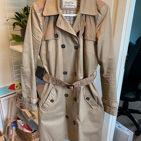 Selger denne stilige trenchcoaten i str S med semsket look. Passer både en str M og S. Ble kjøpt i fjor, og er lite brukt. Kostet 659,- ny.