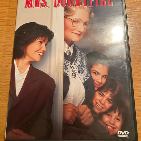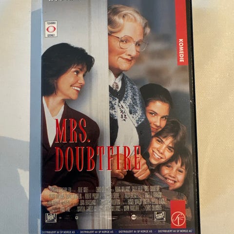 Inn på arenaen hos familien Hillard skrider Mrs. Diubtfire. Verdens koseligste, flinkeste, mest britiske og merkverdigste hushjelp. Hvor langt vil en vanlig far gå for å få samvær med barna sine? Daniel Hillard er ingen A4-far, så når han får vite at eks-kona trebger hushjelp, søker han jobben. Med den perfekte parykken, litt sminke og en kjole til enhver anledning, omformer han seg til Mrs. Doubtfire.....Og han får jobben. Forkledd som "kvinnen" han aldri trodde han kunne bli, skaper Daniel et helt nytt liv med familien sin.