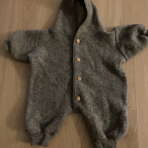 Godullfleece fra nøstebarn. Godt brukt men solid ulldress. Knappene må kanskje forsterkes hvis den skal holde lengst mulig.