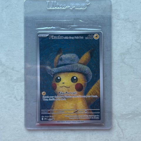 Selger min graded pokemonkort PSA 9 Pikachu Grey Felt Hat/ Van gogh med extended art case