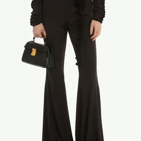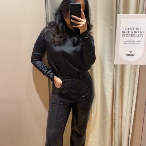 Kunstig skinnbukser fra Rotate Birger Christensen med logo-print, fem lommer og lange, vide bein.