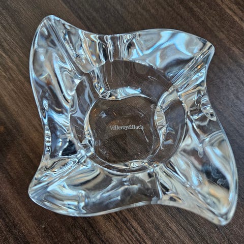 Selger et fint og tungt askebeger fra Kosta Boda. Det er veldig fint mønster i askebegeret og det veier ca 1300 gr så det står støtt og stødig. Det er merket med Kosta Boda merket og i tillegg signert i bunnen. Dette er litt vanskelig å få frem på bildet.