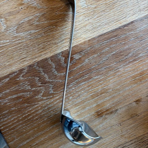 En stor og fin øse i rustfritt stål fra finske Hackman, selges kr 400.
