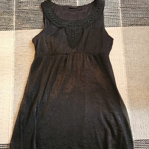 Fransa sort kjole i stretch. Passer til alle anledninger, bare å pynte den opp eller ned.