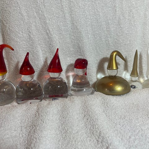 Hadeland Glassverk Jul dekorative glassnisser i rød og klar glass. To størrelser, med høyde på omtrent 12 cm og 7 cm. Laget av klart glass med røde detaljer, egnet som dekorasjon i julen.