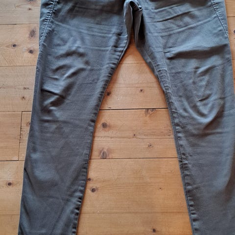 Five Units Chinos i grønn farge, størrelse L for damer. Str 31/32. Laget av bomull og elastan, gir komfort og bevegelighet. Passer til hverdagsbruk og ulike anledninger.