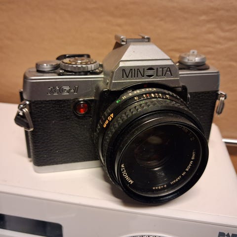 Minolta Dynax 500si kamera utstyrt med et zoomobjektiv. Flott kamera for både nybegynnere og erfarne fotografer. Inkluderer kamerahus, objektiv, linsebeskyttelse og bruksanvisning. Minimalt brukt.