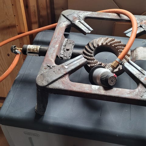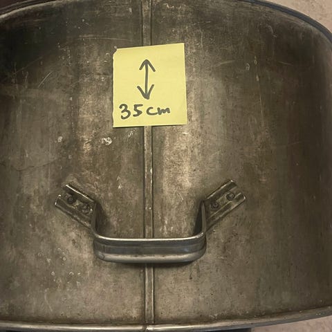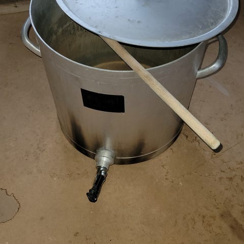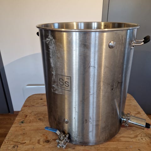 75 liters kjele laget av rustfritt stål med innebygd termometer og tri-clamp tappekran.