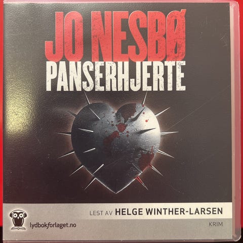 Jo Nesbø Panserhjerte lydbok i 17 CD-er, lest av Helge Winther-Larsen. Inneholder krimfortelling med norsk språk, utgitt i 2009 av Lydbokforlaget AS. Produktet er en fysisk lydbok med ISBN 978-82-421-4740-0.