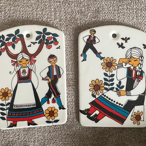 Nydelige og pene smørbrikker fra stavangerflint selges. Jeg hjelper min mor å selge disse så di er på Forus. Kan sendes mot porto, siden brikkene er hos mor og det er jeg som legger ut, brukes ikke fiks ferdig. Eller di kan hentes på Forus. Di selges for 1000 kr samlet. Ikke pruting. Mor har vipps.