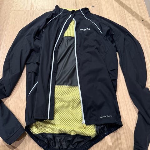 Sykkeljakke fra Craft i str M. Farge som viser godt igjen på veiene. Praktisk lomme på baksiden.